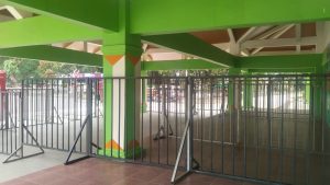 Dalam penerapannya, pagar besi digunakan untuk manajemen aliran penonton, dengan mengarahkan suporter menuju pintu masuk dan loket yang telah ditentukan agar proses antrean berlangsung tertib. Selain itu, keberadaan pagar juga berfungsi sebagai lapisan awal pengamanan, sehingga pemeriksaan keamanan seperti pengecekan barang bawaan dan pemeriksaan badan dapat dilakukan lebih efektif sebelum penonton memasuki area pemindaian tiket.
